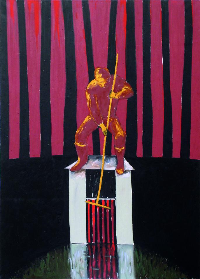 Cleaning the Monk, 1992, oil on canvas, 190 × 136 cm