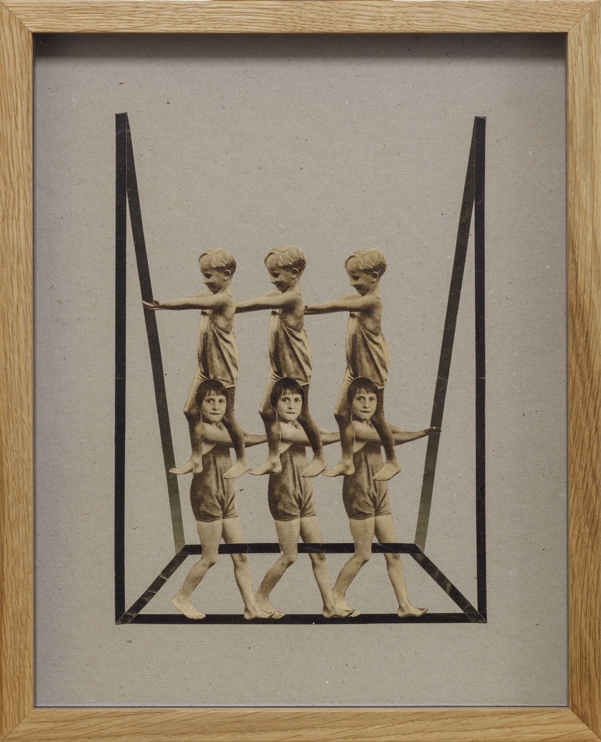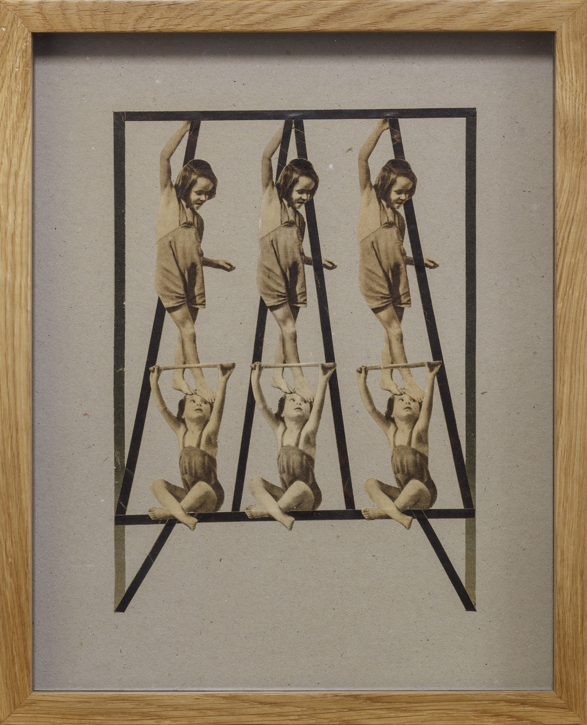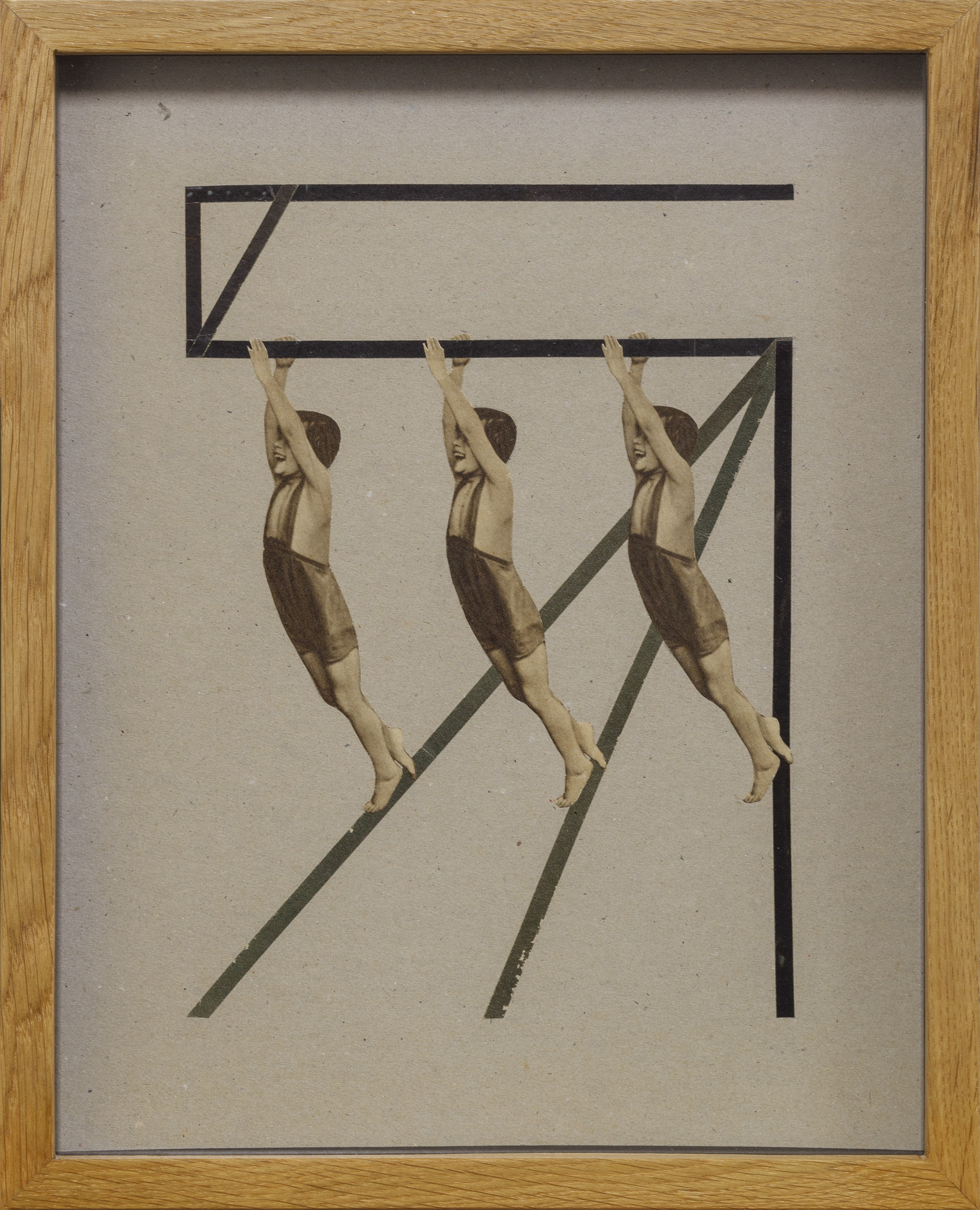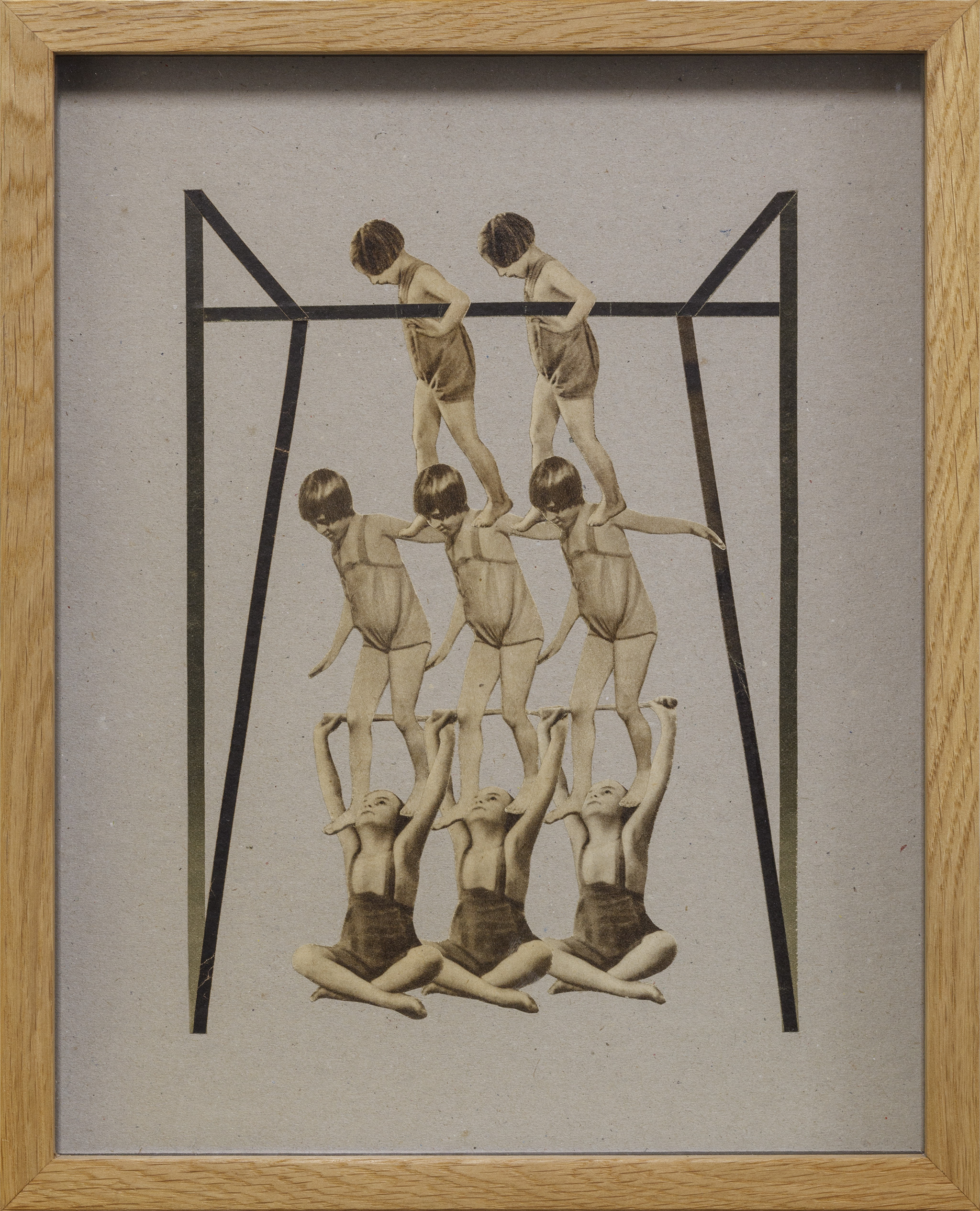 Pomysł sięgnięcia do podręcznika gimnastyki nie jest nowy, wystarczy przywołać choćby Ćwiczenia na równowagę Karola Radziszewskiego (2007, Kolekcja II Galerii Arsenał w Białymstoku). Budując swoje prace, Orzechowska czerpie z ogromnego repozytorium obrazów. Obok oczywistych inspiracji, jakimi były zdjęcia ilustrujące ćwiczenia gimnastyczne, przywołać można plątaninę papierowych mebli Habitatu Katarzyny Józefowicz (1993–6, Kolekcja II). Trudno też uciec od skojarzeń z fotograficznymi klatkami rejestrującymi sekwencje ruchu Eadwaerda Muybridge’a czy od mniej oczywistych odniesień do siatki Lampreya, prostego narzędzia służącego do sporządzania pomiarów antropometrycznych, wypracowanego na gruncie brytyjskiej antropologii fizycznej. Orzechowska zdaje się pracować techniką kopiuj-wklej, symptomatyczną choćby dla dzisiejszego dziennikarstwa. W powielaniu artystka jest twórcza – powstające kolaże stanowią nową jakość. Zasadza się ona na multiplikowaniu i wpisywaniu ciała w różne struktury, klatki, szkielety budowli i konstrukcje liter. Jeden z zestawów składa się w napis „HAUS”, co odnosi do dyscyplinującej roli instytucji domu.