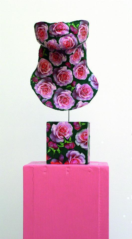 Autoportret z różami, 2002, rzeźba, technika własna, gips, papier, 36 × 17 × 12; postument 115 × 20 × 20 cm