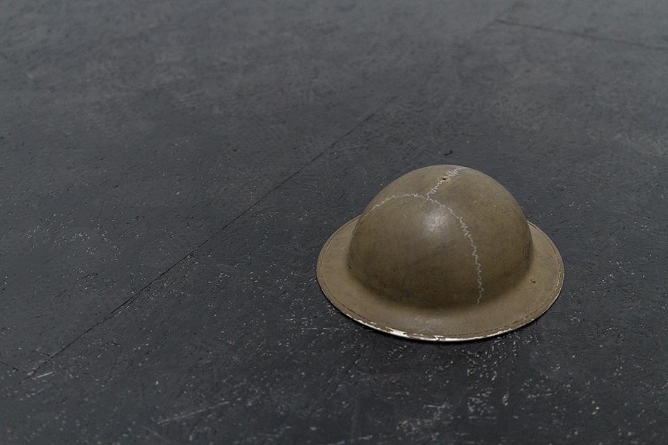 Let us look at a Canadian Army helmet from the First World War from this perspective. Its original history remains in the realm of speculation made possible by the object’s obvious purpose and the signs of wear and tear. The gesture of drawing lines similar to the seams of the skull on the helmet’s surface made it possible to construct new associations around it. The helmet first had the status of a found object, then an object in the artists’ collections, and finally a work in the Arsenal Gallery’s collection. At each of these stages it functioned in the context of other things, which, depending on their configuration, fostered the search for its new meanings. In the case of the Białystok and Zielona Góra exhibitions, installations made of things were interpreted through the lens of dystopia and the dehumanised landscape of a contemporary city, the worsening social alienation and, ultimately, the collapse of civilisation.